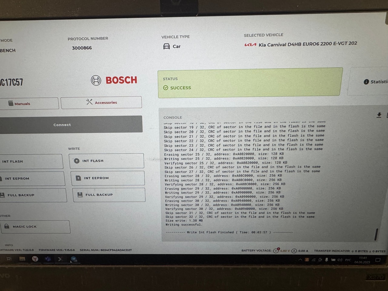 Перепрограммирование со снятием блока управления. Тут блок управления Bosch edc17c57, кстати когда вы слышите о перепрограммировании со снятием эбу, не надо волноваться, ничего страшного, это даже безопаснее чем через разъем диагностики. Снимаем блок, кладем на стол, подключаем к нему провода, разбирать блок не нужно, паять тоже, нужно просто подключить к нему провод программатора.